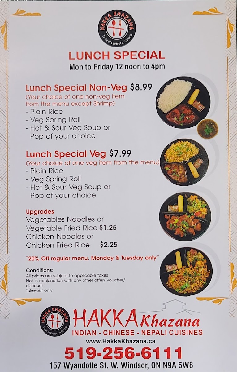 For reservations or inquiries, give them a call at +1 519-256-6111. Enjoy a tasteful journey at Hakka Khazana, where each meal is crafted with care and passion.